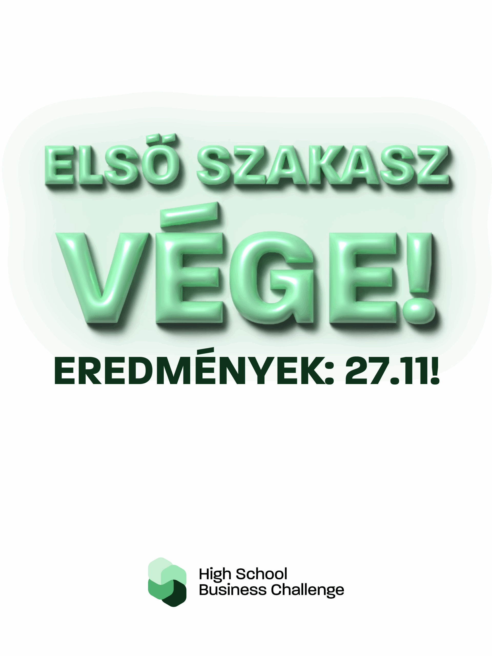 A beküldési időszak hivatalosan lezárult. Köszönjük minden csapatnak a munkáját, elkötelezettségét és kitartását. Egyértelmű, hogy rengeteg energiát fektettetek minden egyes válaszba – ez az energia és kreativitás teszi különlegessé a High School Business Challenge-et.
